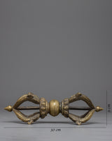 With a width of 30cm, it sits resplendent, inviting admiration and reverence. The skilled artisans have intricately carved and crafted this Vajra, capturing its symbolic essence and profound meaning.