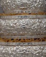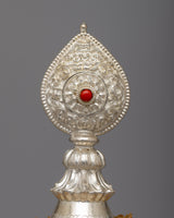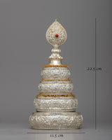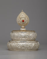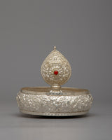 Experience the Tibetan Mandala Set, an exquisite set that is carefully created by hand from pure silver. This set, which stands 22.5 cm tall and is embellished with intricately carved auspicious symbols, epitomizes Tibetan mysticism.