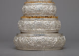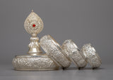 Every component in this mandala is an exquisite work of handcrafted art, lovingly constructed to perfection. The Mandala Set is elevated to a level of heavenly elegance and admiration by the exquisite carvings and pure silver.