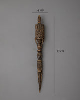 Introducing the exquisitely carved Tibetan Phurba Knife, a reminder of both traditional workmanship and spiritual force. This beautiful phurba weighs 0.158 kg and is 33 cm tall and 4 cm wide. It was crafted by hand from ethically sourced buffalo bone. The elaborate engravings on the bone reflect the rich cultural legacy and spiritual practices of Tibetan Buddhism, where the ceremonial knife, or phurba, is used to drive out evil spirits and obstacles.