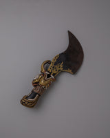 This ceremonial knife, crafted with very good care and respect, has a blade designed for certain ceremonial uses in Tibetan ceremonies. Because the iron development is authentic and long-lasting, it reflects the historical and spiritual background of Tibetan culture. Our Handcrafted Tibetan Ritual Knife is a treasured addition to any collection, combining artistry, usefulness, and spiritual reverence. It can be used in rituals, displayed as a cultural item, or added to a collector's weapons.