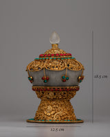 The Tibetan Traditional Rice Pot is a useful and attractive object ideal for collectors and people who value cultural artifacts. Whether it's positioned in a sacred area or atop an altar, it adds a touch of beauty and spiritual depth to any environment. Because of its exquisite craftsmanship and cultural significance, it is a treasured addition to any home.