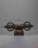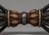 Handmade with care and compassion, this vajra is a physical reminder of Tibetan Buddhism's profound teachings and precepts. Its presence encourages people to strengthen their spiritual practices and develop inner strength and insight. Whether employed as a meditation tool or a sign of spiritual devotion, the Tibetan Vajra on Wooden Stand evokes a sense of ageless tradition and profound spirituality.