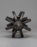 The Tibetan Vajra on Wooden Stand is a stunning combination of traditional workmanship and artistic flair, precisely crafted from iron and painted with acrylic. This sacred insignia has beautiful workmanship and represents spiritual strength and enlightenment in Tibetan Buddhism. When paired with a wooden platform, it provides both functional display and symbolic value, making it an ideal focus point for meditation events, ritual ceremonies, or as a decorative item.