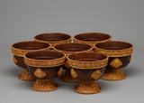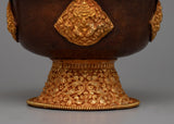With its beautiful craftsmanship, the Tibetan Water Bowl Offering Set embodies reverence and devotion, perfectly capturing the rich spiritual tradition of Tibetan Buddhism. Each of the seven bowls in this set, which is handcrafted on oxidized copper bodies and lavishly plated in 24k gold, is a hallowed vessel for offerings to enlightened creatures. These bowls are made with great care and attention to detail. They are meant to hold water, which represents purity and blessings.