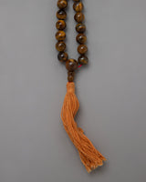 Our AAA Grade Brown Tiger Eye Japa Mala handcrafted with 8mm beads, represents spiritual strength and grounding. Each bead, infused with the captivating colors of brown Tiger Eye, exudes protection and vitality, guiding you on a journey of inner transformation and empowerment.