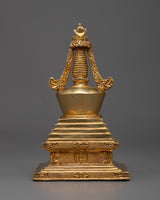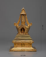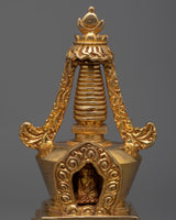 Allow yourself in the timeless beauty of our Traditional Stupa Statue, an act of love that has been carefully handcrafted to perfection. This exquisite piece, which captures the essence of spiritual elegance, has a Copper body adorned with lustrous 24k Gold Plating .