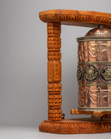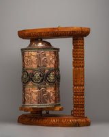 The Traditional Wooden Frame Prayer Wheel, painstakingly made to encapsulate the essence of Tibetan spiritual tradition, is a beautiful marriage of traditional craftsmanship and spiritual devotion. Crafted with a copper body and housed in a wooden frame, it radiates devotion and authenticity. This prayer wheel is an enduring representation of Buddhist practice that invites practitioners to participate in the holy practice of reciting prayers and mantras for the good of all living things.
