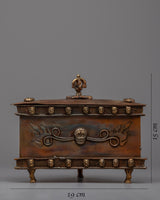 Unlock the secrets of ancient wisdom with the Treasure Box Case, an exquisite creation handcrafted on a lustrous copper body. Adorned with a captivating brass skull, this case becomes a vessel of spiritual significance, holding within it 14 sacred ritual items, each imbued with its own divine power.