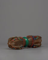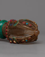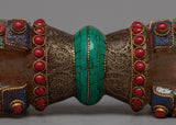 The gemstone inlay adds a touch of opulence and vibrancy, making this weapon not just a tool but also a work of art. The unique Seku design vajra, it embodies the essence of sacred geometry and spiritual significance.