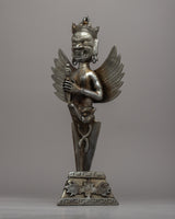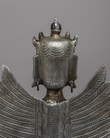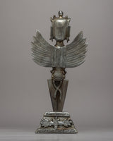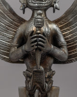 With our meticulously handmade iron Vajrakilaya Phurba with Stand, discover the depths of Tibetan spiritual practices. This huge ceremonial dagger, measuring 41 cm in height by 19.5 cm in width and weighing a considerable 3.01 kg, is intended to provide stability and weight for sacred ceremonies.