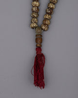 Tibetan mala beads are sacred and spiritual accessories used in meditation and prayer practices. These bead strings typically consist of 108 beads, though shorter variations exist. Each bead is carefully handcrafted from materials like wood, bone, or gemstones, and they are often adorned with a guru bead and a decorative tassel. Mala beads serve as a tactile aid for counting mantra repetitions or breaths during meditation, fostering mindfulness and concentration. They hold deep significance in Tibetan and Buddhist traditions, helping practitioners connect with their inner spirituality while embodying a sense of peace and mindfulness in daily life.