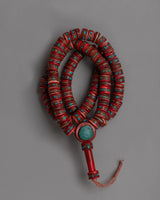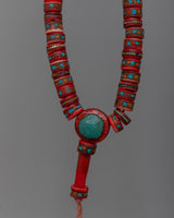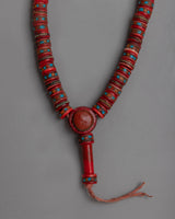 These mala beads are embellished with naturally dyed red coral embellishments to heighten their visual appeal and spiritual significance. Deepness and beauty are added to the design by the stark contrast between the earthy tones of the yak bone and the bright red hues of the coral beads. Yak bone and red coral give these mala beads a potent energy that makes them perfect for spiritual practices and mindfulness rituals. Yak bone is a symbol of strength, protection, and perseverance.