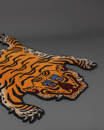 Hand Knotted Tiger Designed Rug | Tibetan Wool Craft