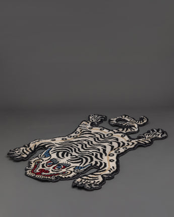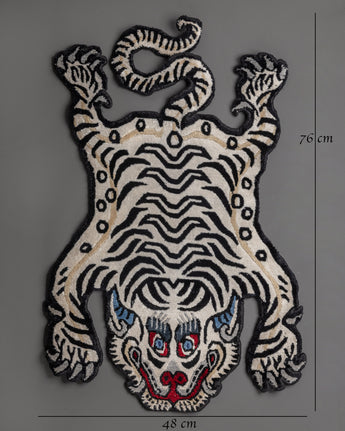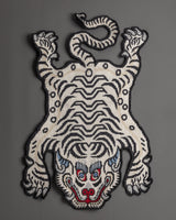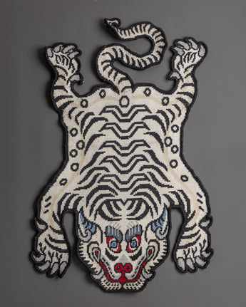 Handmade White and Black Tiger Knotted Rug | Home and Spiritual Space Decor
