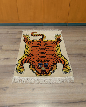 Tibetan Woolen Tiger Rug | 100-Knot Craftsmanship