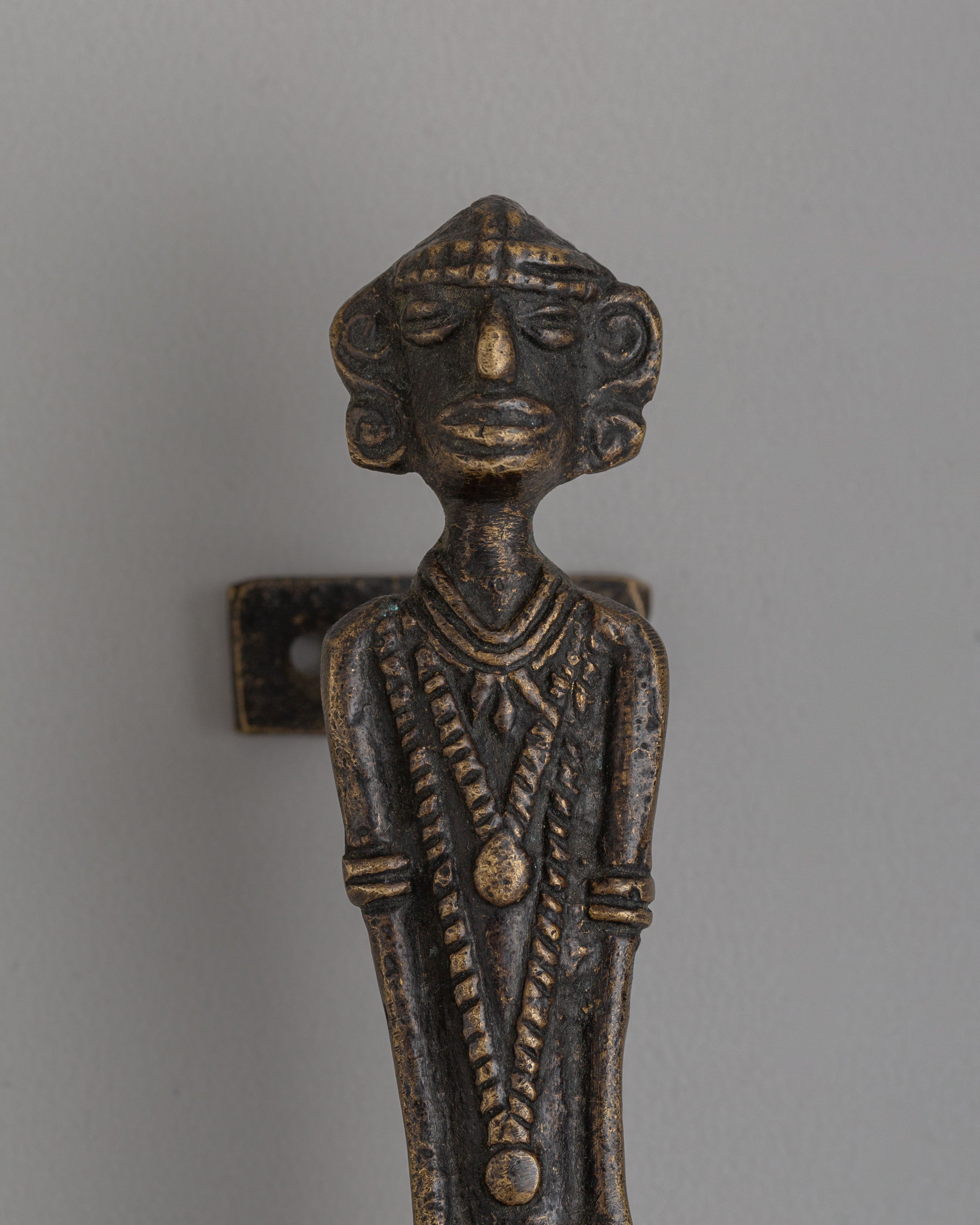 The handle features handcrafted textures and motifs, reflecting traditional design influences. Its smooth curves and refined details suggest a blend of elegance and strength, making it a symbolic addition to your space. Though minimalistic, the design carries an artistic essence, with patterns and lines that evoke balance, protection, and craftsmanship, perfect for home, office, or spiritual settings.