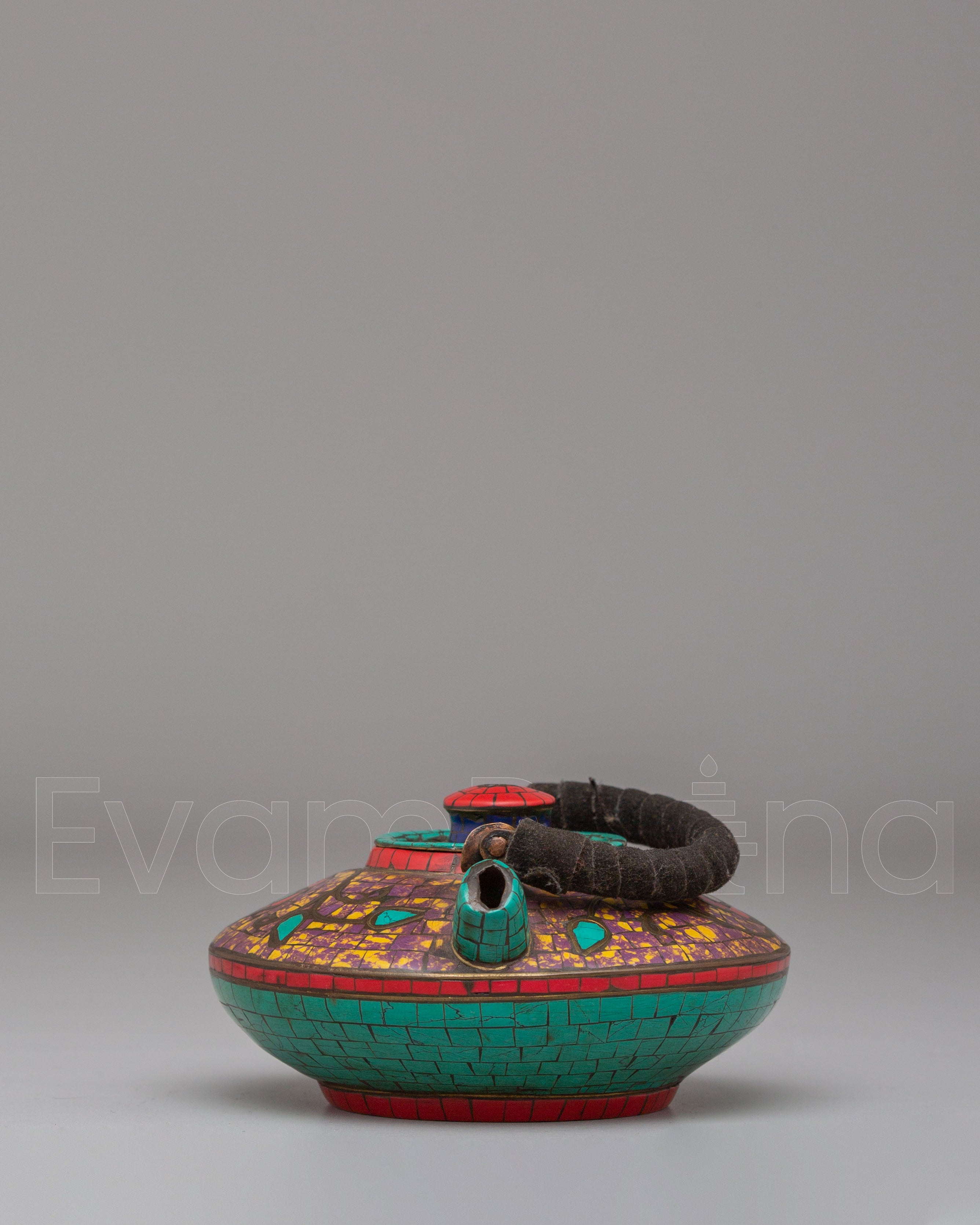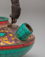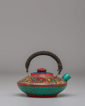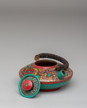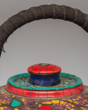 Handmade Buddhist Tea Pot | Copper with Coral, Lapis & Turquoise Stones