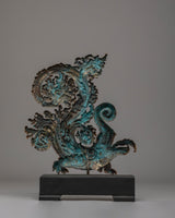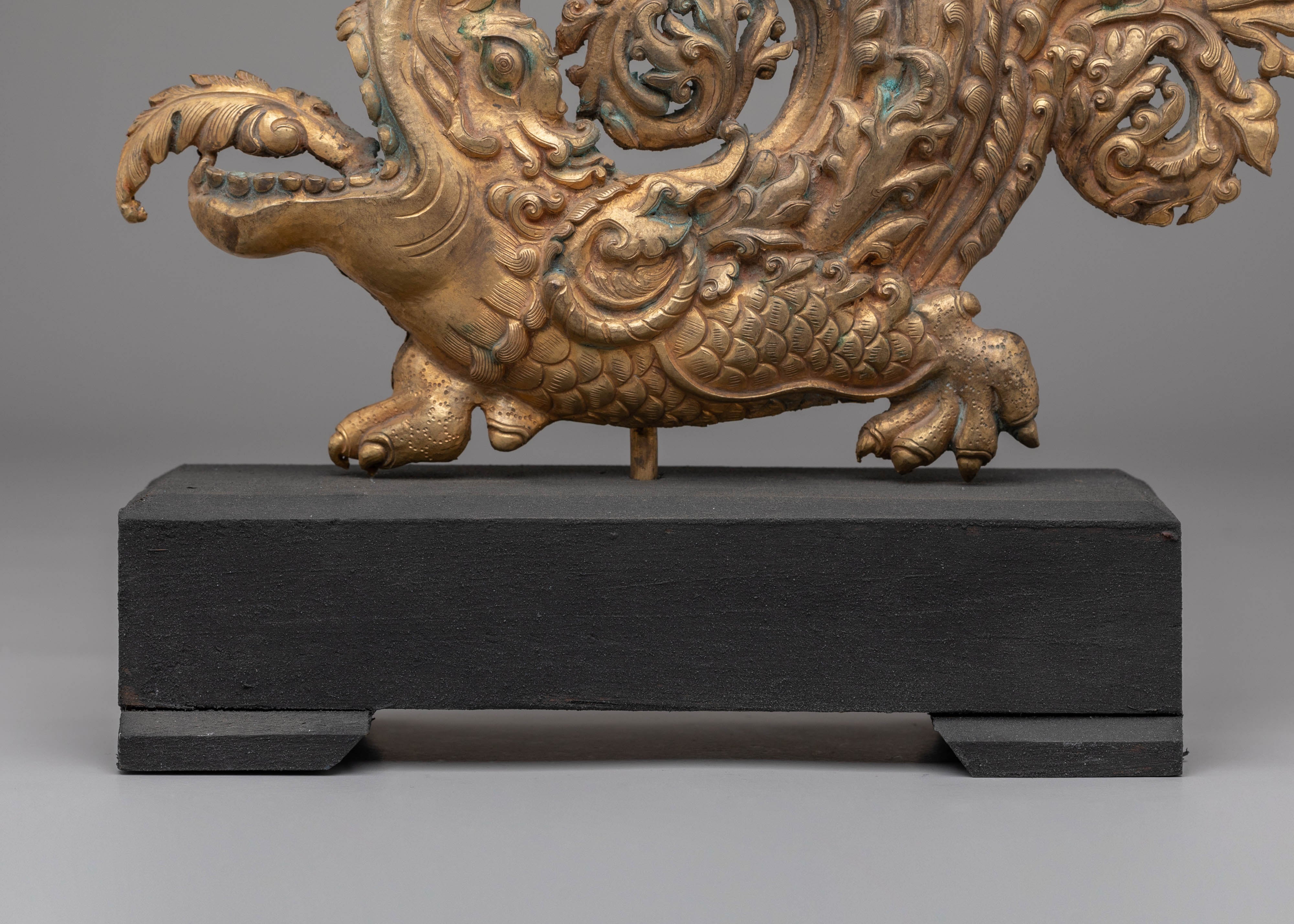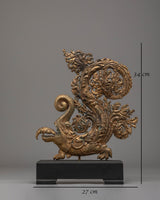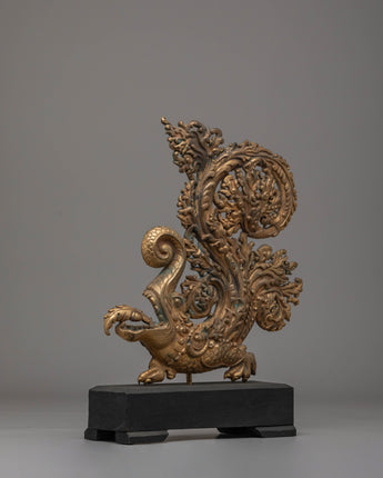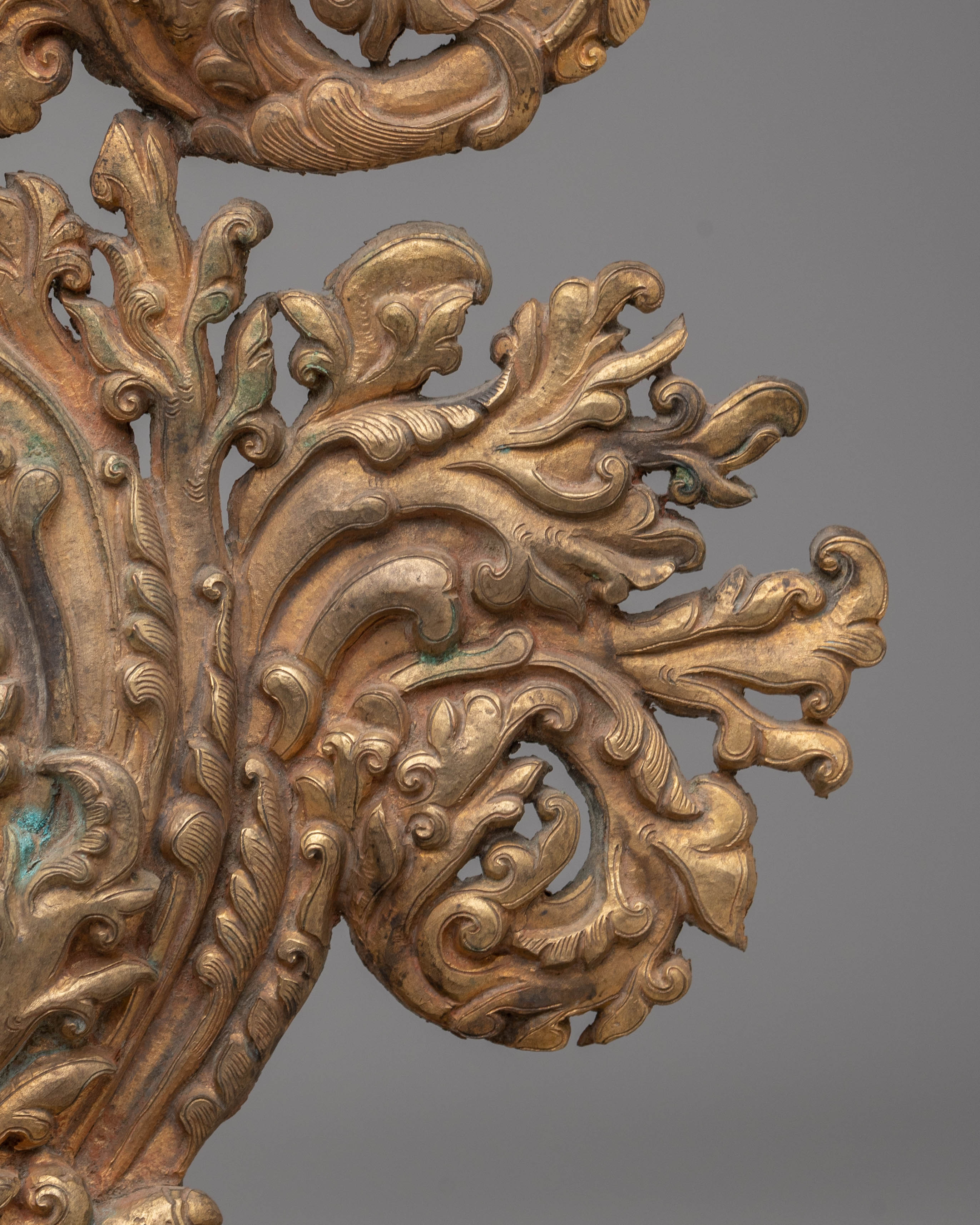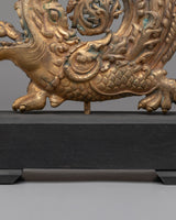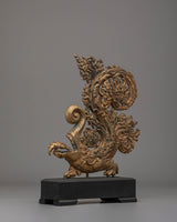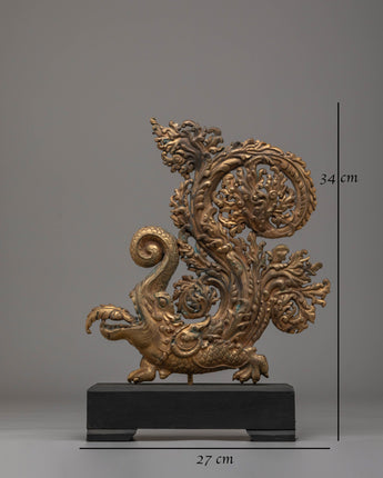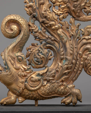 In many different civilizations, makara are highly symbolic of bravery, strength, and good fortune. makara are adored as celestial beings that symbolize the elemental elements of nature and the wisdom of the cosmos in many Eastern faiths, including Tibetan Buddhism. They inspire feelings of grandeur and heavenly presence because they are keepers of treasures and emblems of imperial power. These already magnificent sculptures are made even more stunning by the gold plating, which enhances both their visual appeal and spiritual resonance.