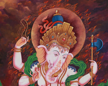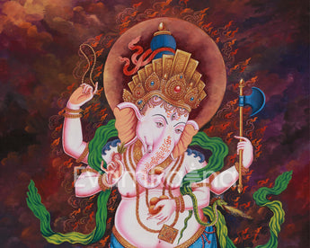 This Ganesh print was created using High-quality Giclée printing technology, ensuring vibrant colors and enduring durability. The canvas medium adds depth and substance to the artwork, making it come alive. This piece serves as a beautiful reminder of Ganesh's blessings, whether you're a practitioner or simply an admirer of spiritual and cultural art.
