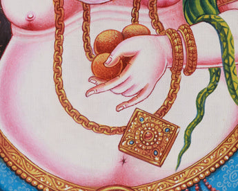 This gorgeous Ganesha Canvas enhances the elegance of your home or any sacred place. It showcases the revered Hindu deity Ganesh, known for removing obstacles and fostering prosperity while carrying deep spiritual significance. This artwork infuses any space with blessings, tranquility, and positive energy, making it a perfect addition to a sacred element in your decor. The exquisite craftsmanship and bright colors make it a standout piece in your collection.