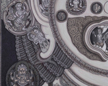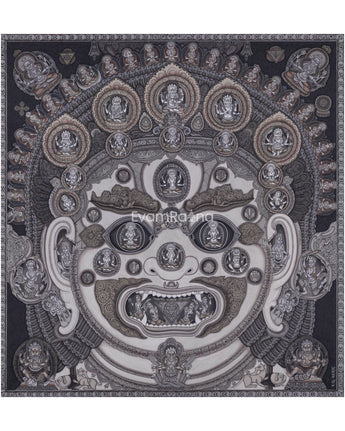 Lord Bhairava, a Hindu pantheon deity, embodies Shiva's fierce and formidable aspects, such as dissolution and destruction. Within Tantric Buddhist traditions, Bhairava may be invoked as a protective deity or a symbol of enlightened awareness. Typically depicted as a fearsome and wrathful figure, Bhairava's energy is said to possess the power to slice through obstacles and illusions that obstruct the path toward enlightenment. This artistic representation of the deity on a cotton canvas looks magnificent.
