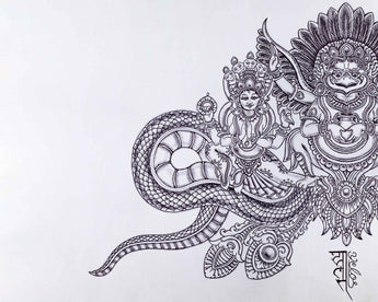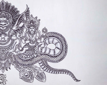 Introducing the Garuda bird, a captivating symbol of power, strength, and divine protection. This extraordinary paubha print brings to life the mythical creature from Hindu and Buddhist traditions with breathtaking artistry. The Garuda, depicted with a magnificent eagle-like form, spreads its wings with grandeur and grace. Intricate details highlight its fierce beak, piercing eyes, and splendid plumage, while intricate motifs symbolize its celestial origins. As the mount of Lord Vishnu, the Garuda embodies courage and serves as a guardian against evil forces. Embrace the awe-inspiring presence of the Garuda bird with this exquisite paubha print, infusing your space with a sense of mystique and spiritual power. Elevate your collection with this sacred artwork, a testament to the divine beauty of ancient mythology.