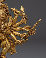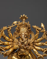 12-Armed Ganesh Gold-Plated Copper Statue | Hindu Deity of Power & Protection