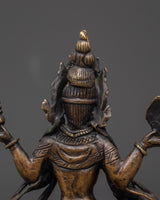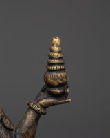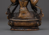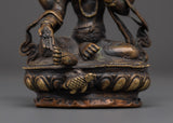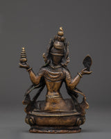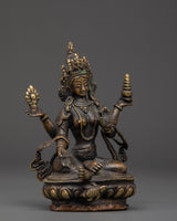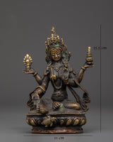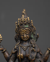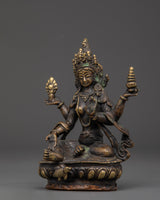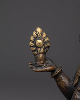 This piece is expertly handcrafted in brass with an antique finish, measuring 15.5 cm in height and 11 cm in width, and weighing 0.65 kg. The goddess is depicted sitting gracefully on a lotus base, her four arms holding sacred symbols of abundance and offering blessings in a gentle gesture. Every detail, from the ornate crown to the flowing robes, exudes skilled craftsmanship and spiritual reverence. An ideal piece for Diwali altars, wealth rituals, or devotional practices.