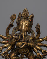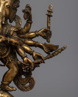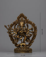Presenting the exquisite Copper Ganesh Statue, a masterpiece of spiritual beauty and painstaking craftsmanship. This statue is crafted from a copper body and has an exquisite gold plating. It is 24.5 cm in height and 21 cm in width and weighs 2.02 kg. The statue's visual appeal and spiritual importance are enhanced by the antique finishing, which lends a timeless beauty.