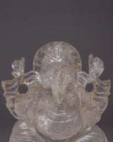 Feel the peaceful energy of this exquisitely carved Crystal Ganesh Murti made of bright crystal stone. This statue, which stands elegantly at 10 cm in height and 0.49 kg in weight, represents the highly esteemed attributes of Lord Ganesh in Hindu mythology, signifying prosperity, wisdom, and the elimination of barriers. The artisan's commitment to capturing Ganesh's heavenly essence is evident in every precisely carved detail, from the tranquil expression to the expertly created features.
