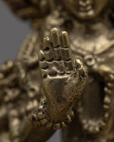 Introducing the magnificent Maa Durga Idol, meticulously handcrafted from brass. This exquisite statue portrays the fierce and divine Goddess Durga in all her glory, seated gracefully atop a majestic lion. Every detail, from her radiant countenance to the intricate adornments and weapons she holds, is intricately carved by skilled artisans, capturing the power and strength of the goddess. The combination of brass as the medium further adds a touch of elegance and durability to this sacred piece of art. Display this handcrafted Maa Durga Idol in your home or sacred space, and feel the divine energy and protection that she embodies. Let her presence inspire and empower you on your spiritual journey, as she represents the epitome of feminine power and resilience.