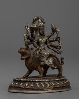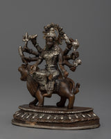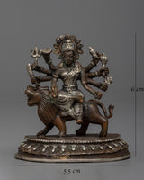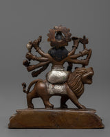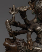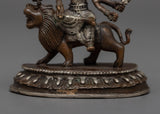 This statue, which is perfect for individual altars or as the center piece of any collection, is not just aesthetically pleasing but also captures the strength and essence of Goddess Durga. Despite being machine-made, the artistry perfectly captures the imposing presence and spiritual significance of Durga, making it a treasured object for both collectors and devotees that evokes sentiments of devotion and empowerment wherever it is displayed.