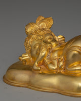 Elegant Gold-Plated Ganesha Statue | Sleeping Ganesh Sculpture