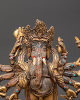 The exquisite detailing of the throne and the divine expression of Ganesha reflect Himalayan craftsmanship and devotion. Each stone accent adds depth, color, and spiritual energy, with turquoise representing protection, lapis lazuli embodying truth, and coral symbolizing vitality. This statue not only carries immense cultural and spiritual significance but also serves as an inspiring work of art that enriches meditation, sacred ceremonies, and home décor. A true blend of artistry and devotion, it radiates blessings, prosperity, and divine guidance wherever it is placed.
