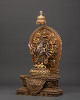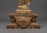 This Ganesh Crystal Statue with Throne offers both spiritual and aesthetic advantages, making it a significant investment. As the remover of obstacles and the harbinger of prosperity, Lord Ganesha brings blessings of wisdom, success, and protection to your home or sacred space. The combination of a gold-plated copper body, crystal accents, and inlaid gemstones such as turquoise, lapis lazuli, and coral not only enhances its visual beauty but also carries symbolic energies of protection, truth, and vitality. Placing this statue on an altar, meditation corner, or as a centerpiece in your home invites divine presence while elevating the décor with its majestic craftsmanship. Beyond decoration, it becomes a source of inspiration, positivity, and spiritual growth.