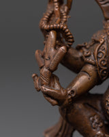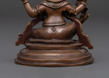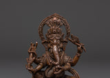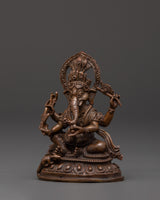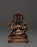 This handcrafted statue of the Hindu deity Ganesh will bring knowledge, wealth, and the removal of obstacles into your home. Handcrafted from oxidized copper, this small figure is 8 cm tall, 6 cm wide, and weighs only 0.12 kilogram. One of the most revered and regularly worshipped gods in Hinduism, Ganesh is ideal for altars at home, in the workplace, or in meditation spaces. Known as the god of beginnings and the removal of obstacles, this exquisitely sculpted sculpture expertly captures his elephant-headed figure.