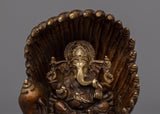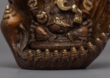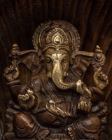 Introducing the magnificent handcrafted Ganesh Lord Statue, crafted on a brass body with the utmost care and accuracy. The beloved god Ganesh, who removes obstacles and is the lord of wisdom and prosperity, is portrayed in this magnificent statue. From the delicate facial features to the graceful posture, the intricate craftsmanship brings out the finest details. The statue sits atop a gorgeously crafted throne, which lends it a sense of authority and respect. This Ganesh Lord Statue's warm and lustrous brass finish makes it the ideal centerpiece for your sacred space or a thoughtful gift for a loved one. With the help of this magnificent work of art, welcome Lord Ganesh's divine presence and blessings into your life.