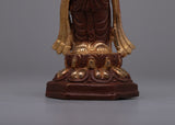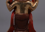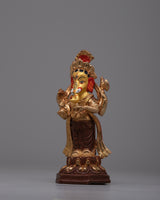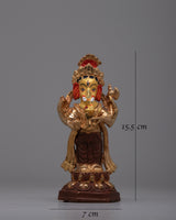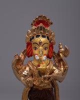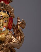 Standing tall at 15.5 cm with an elaborate design that perfectly embodies the essence of the renowned deity, the Ganesh Standing Statue emanates a sense of heavenly presence and majesty. This statue's intricate details, which include its handcrafted copper body and gold plating, attest to the craftsmanship and expertise of the artisans who painstakingly brought it to life. Every detail, from the trunk's soft curvature to the elaborate decorations on the clothing, bears witness to the respect and care that went into making it.
