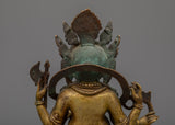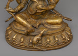 The Ganesh Statue is skillfully handcrafted on a copper body, showcasing craftsmanship and attention to detail. The statue is given an antique look, which adds a sense of timelessness and character to the piece. Ganesh, the deity, is depicted with four hands, each holding different ritual objects symbolizing his various attributes and powers. This representation captures the essence of Ganesh as the remover of obstacles and the bestower of blessings. The combination of the copper body and antique finish creates a visually stunning and spiritually significant Ganesh Statue that can be cherished for its beauty and symbolic meaning.