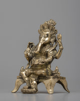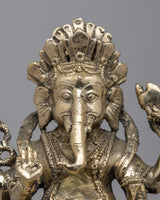 The statue radiates sacred energy, evoking awe and reverence, and perfectly portrays the essence of Ganesh's divine presence with detailed workmanship and fine craftsmanship. This statue is a potent symbol of fortitude and divine favor that can be used to adorn a home altar or shown in a hallowed place, bringing blessings and good fortune into the lives of people who treasure it.