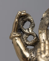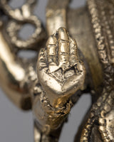 With much respect and affection, the God Ganesh Statue is a small 15.5cm tall, finely sculpted statue made of brass. Lord Ganesh, who is regarded as the remover of barriers and the giver of benefits, is represented by this magnificent artwork as representing wisdom, prosperity, and divine protection.