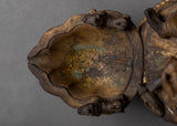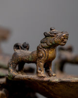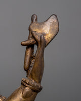 This vintage Ganesh Sukhnda Statue holds within its brass body not only the artistry of skilled hands but also the echoes of a bygone era. Crafted long ago, this statue exudes a sense of timelessness and carries with it the whispers of ancient traditions. Its intricate details and carefully carved features serve as a tribute to the craftsmanship of artisans from another time, capturing the essence of devotion and reverence.