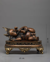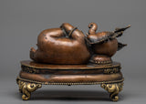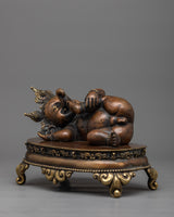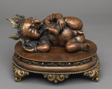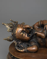 Introducing the magnificent Ganesha God Statue, a divine masterpiece handcrafted on a solid brass body. This awe-inspiring statue depicts Lord Ganesha in a unique and tranquil pose, peacefully sleeping upon a circular base. The intricate detailing and craftsmanship bring the deity to life, capturing the essence of Ganesha's divine energy and wisdom. The brass material adds a touch of elegance and durability to this sacred artwork, making it a timeless symbol of devotion and spiritual connection. Invite the blessings of Lord Ganesha into your space with this captivating statue, a reminder of his divine presence and the power of overcoming obstacles.