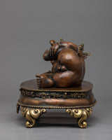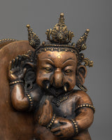 He is worshiped widely in both Buddhists and Hindus. In Buddhism, he is depicted in many forms, in this statue we have depicted him sitting on a moon disc atop a lotus. He has an elephant face with three eyes, his eyes are symbolic of wisdom and enlightenment.