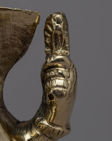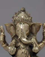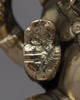 This Ganesha Mantra Practice Statue is a lovely piece of brass work. The statue represents the revered elephant-headed deity holding his symbolic items in four hands. The statue's brass body is beautifully made to highlight the delicate Ganesha's form. This statue is great for Ganesha's mantra practice, providing a concrete depiction of the positive energy of this Hindu deity.
