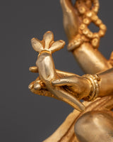 Meticulously handcrafted by skilled artisans, this Ganesha statue boasts a harmonious blend of copper and gold plating, resulting in a stunning, radiant appearance. Ganesha, with his elephant head and vibrant energy, symbolizes wisdom, knowledge, and the overcoming of obstacles. Perfect for meditation, rituals, or as a thoughtful gift, this figurine brings an aura of peace and prosperity. Display it in your home or office to invite good fortune, or give it to loved ones as a meaningful and sacred gift to invoke blessings.