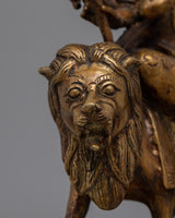 Celebrate the triumph of good over evil with this spectacular handcrafted Brass Durga Statue, which is a true representation of power, courage, and divine energy. Durga, the Hindu goddess of protection and elimination of evil, is represented in her majestic form riding a lion and holding numerous weapons, symbolising her willingness to protect her devotees. This magnificent artwork is 27cm tall and 19cm wide, making it an ideal focal point for your altar or holy place.