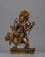 Made of superior brass alloy, this Durga statue has meticulous workmanship that brings the goddess' glorious traits to life. Its weight, 2.59kg, contributes to its sense of power and permanence. This statue is ideal for spiritual ceremonies, daily worship, or as a decorative piece, as it resonates with the energy of the Goddess Pathivara, bringing blessings of protection, power, and wealth into your home. It is a timeless relic that not only serves as a spiritual symbol but also adds beauty to any collection.