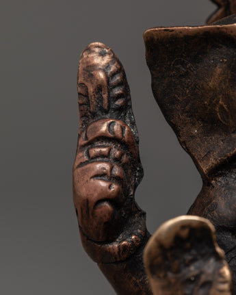 This Handcrafted Statue of Lord Ganesh is a stunning representation of the Hindu god of wisdom, prosperity, and remover of obstacles. Standing at 12.5 cm tall and 9 cm wide, this brass statue captures Ganesh’s tranquil yet powerful presence. The statue weighs 0.67 kg, making it substantial in its fine craftsmanship and detailing. The artist has skillfully created a balanced figure that radiates positive energy, perfect for spiritual spaces or as a gift for loved ones.